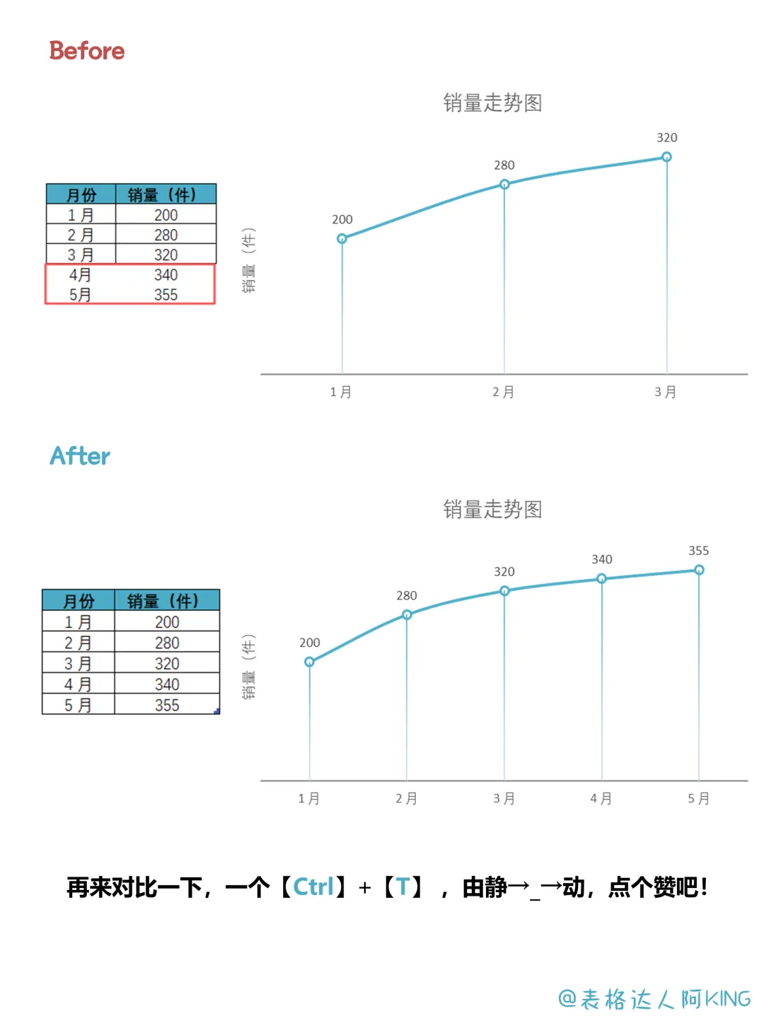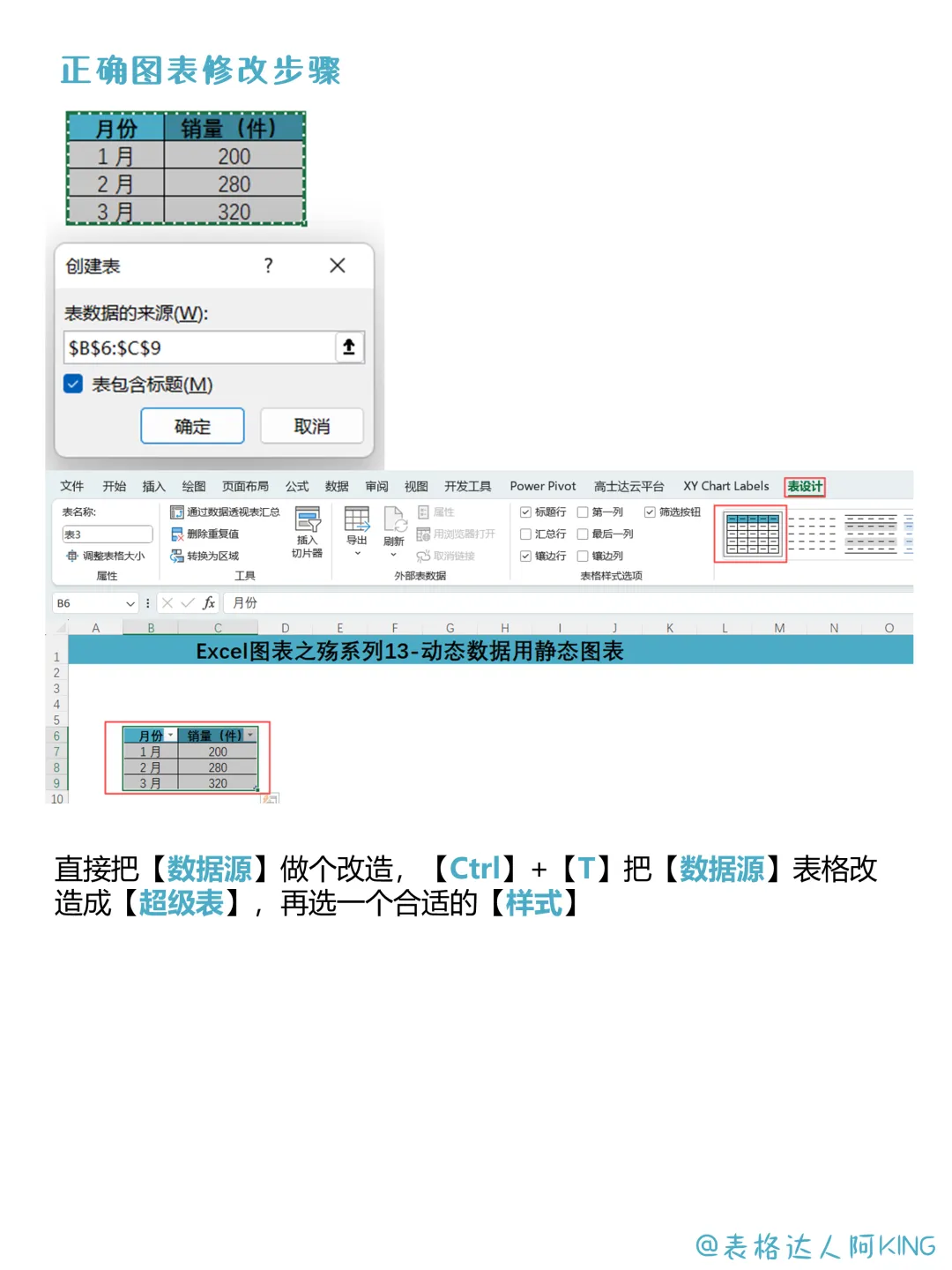 【Ctrl】+【T】把数据表格转化成【超级表】