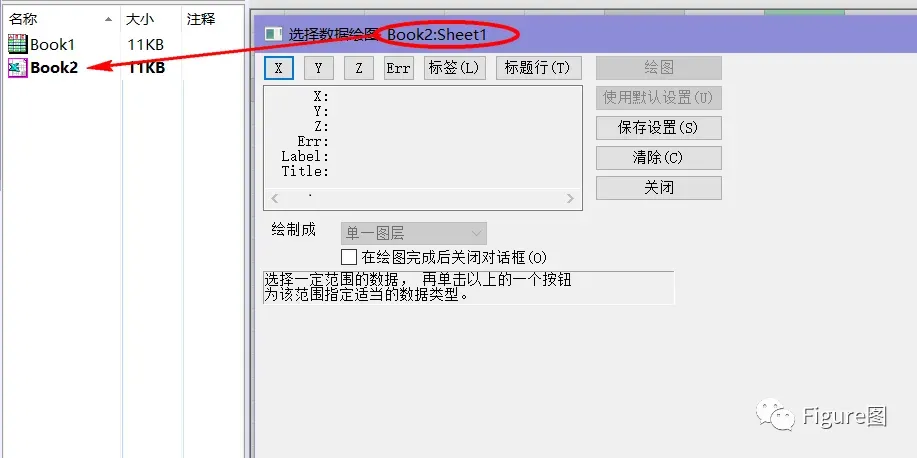 点击相应的图表类型后,会弹跳出“选择绘图数据”的对话框,默认的数据来源为新创建的Excel表格,如下图所示