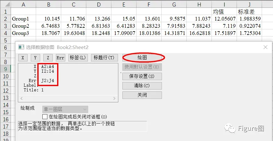 设置好之后,对话框中会显示相应的表格区域,再点击“绘图”即可,如下图所示: