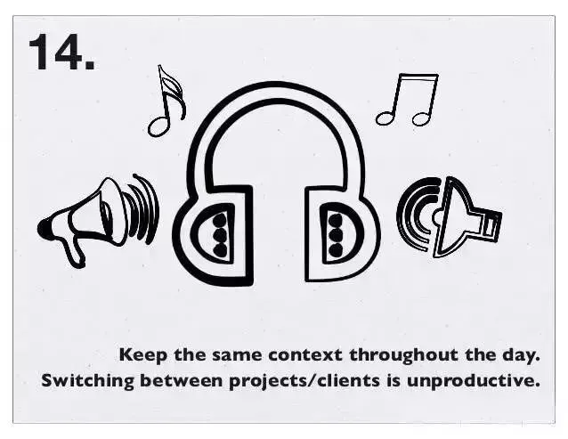 14、一整天保持相同的工作环境。在项目/客户之间切换,会效率低。
