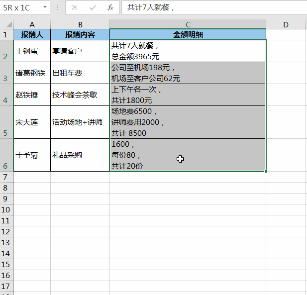 下图 1 和下图 2 的 C 列分别没有换行和有换行,如何将 1 变成 2,又把 2 恢复成 1?