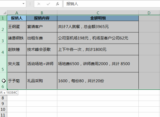 5. 选中需要调整行高的所有行 --> 双击任意选中行标签之间的空档,即可批量完成行高自适应