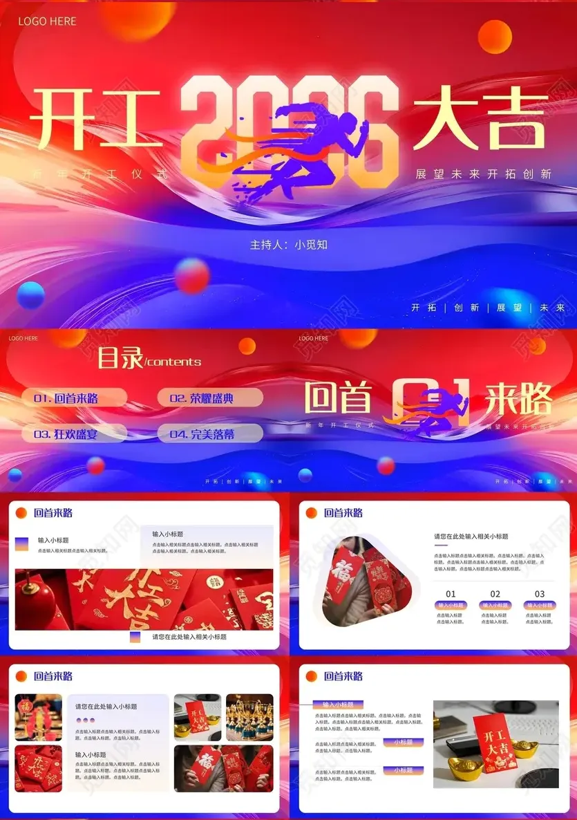 红蓝渐变大气开工仪式宣传PPT模板开工开工开工大吉