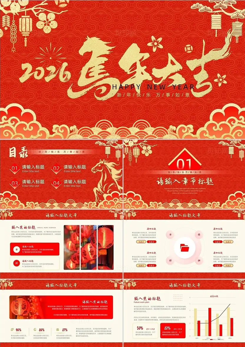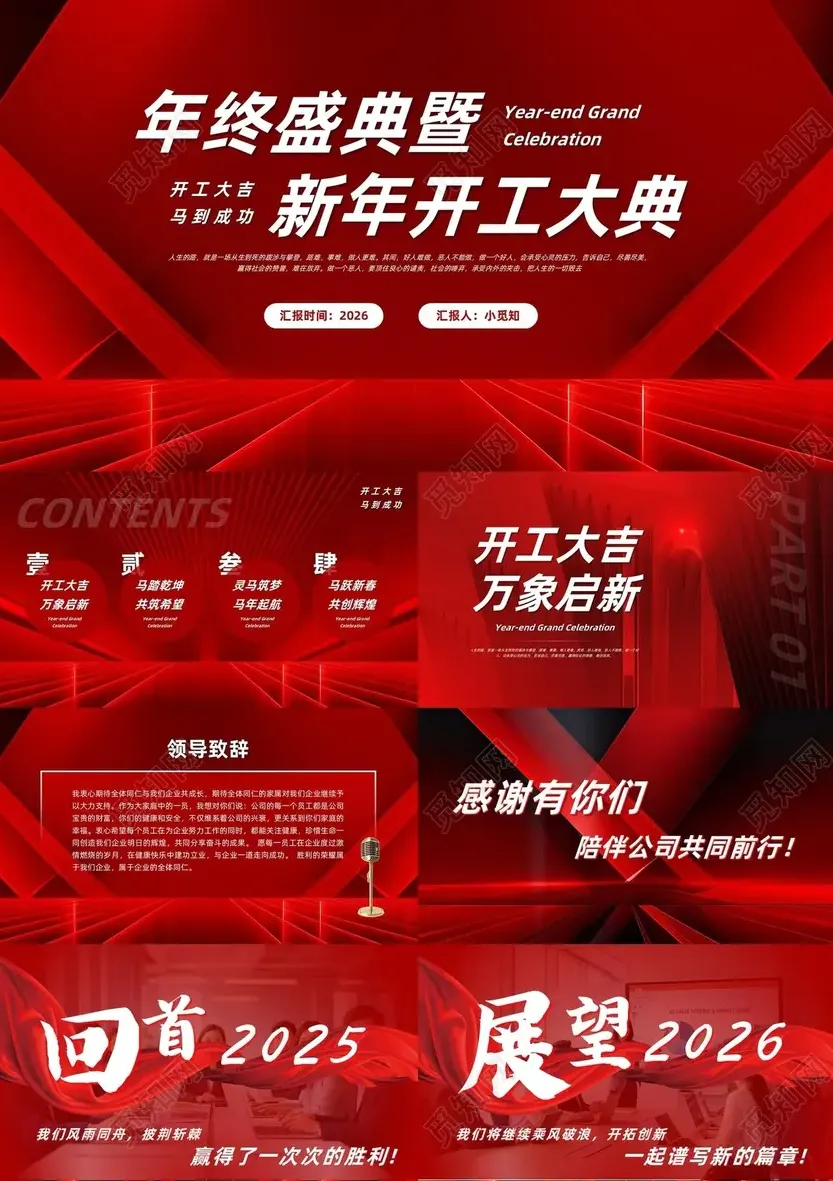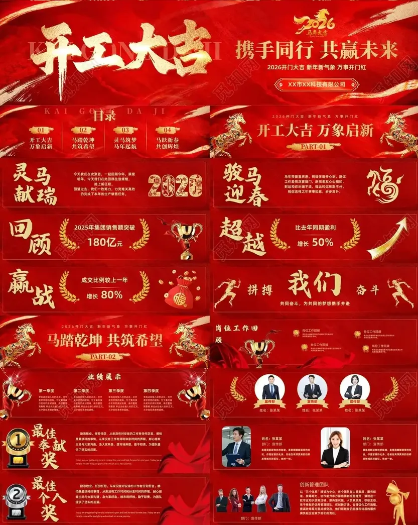 今天是春节,祝大家马年快乐~同时阿榄也给大家提前准备了企业复工所需要用到的开工大吉主题PPT模板,精选了10套2026年最新的,可用于开工大吉、开工培训、年度总结等!