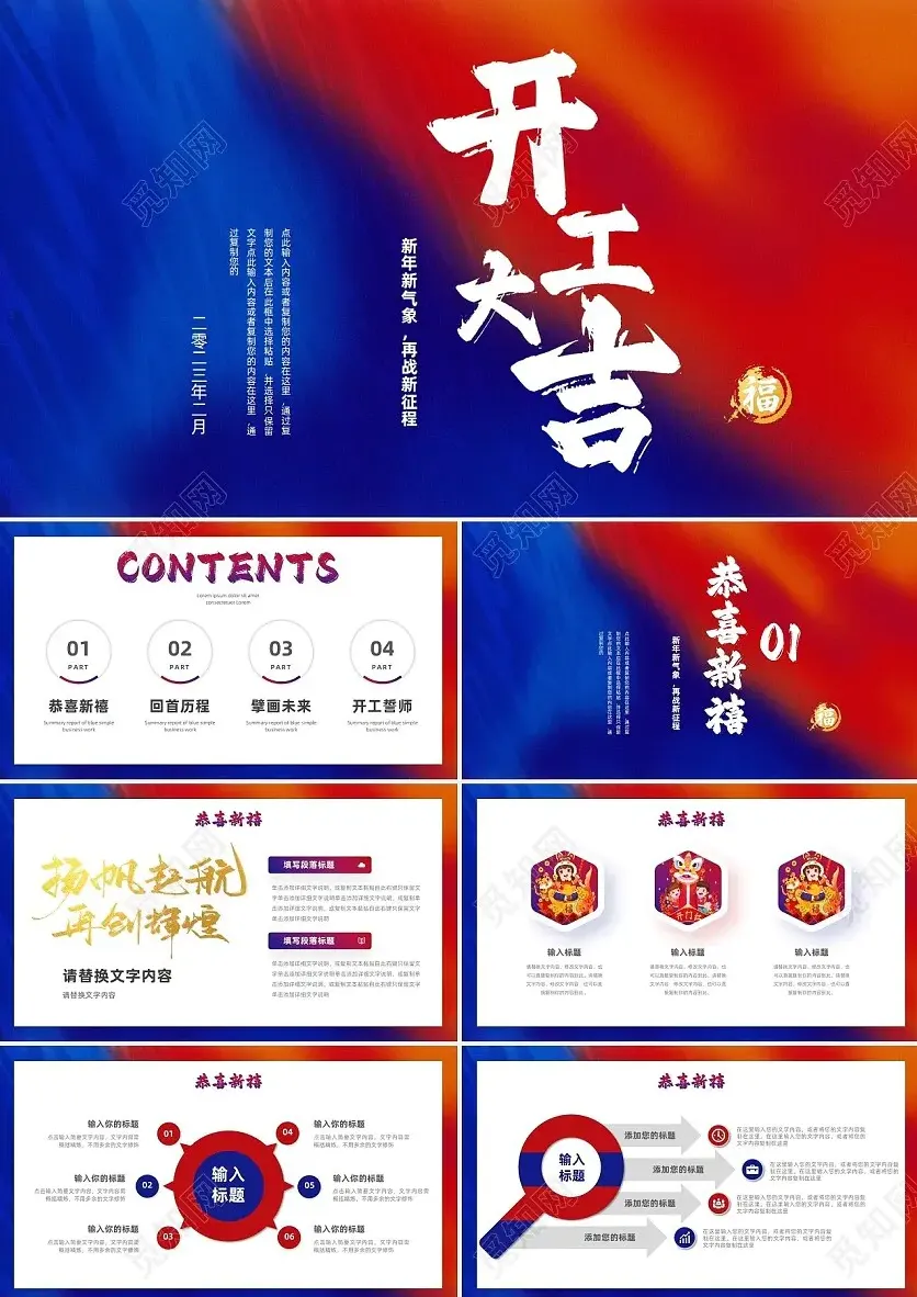 简约风红蓝配色开工复工大吉公司企业新年开业大典PPT