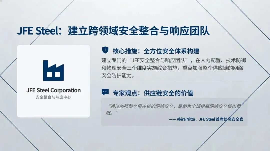 同时,报告结合强生以威胁情报驱动安全战略、JFE Steel 搭建跨领域安全整合与响应团队的实践案例,为行业提供了可借鉴的最佳实践。