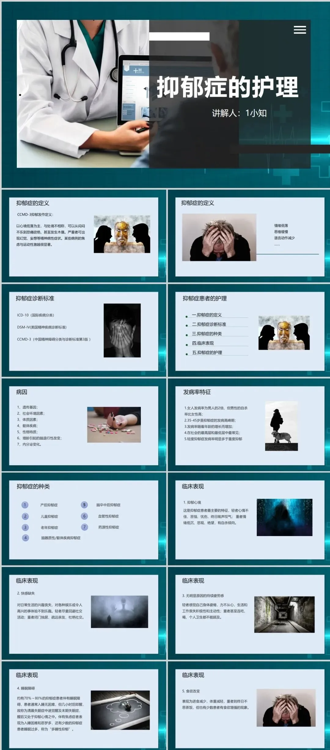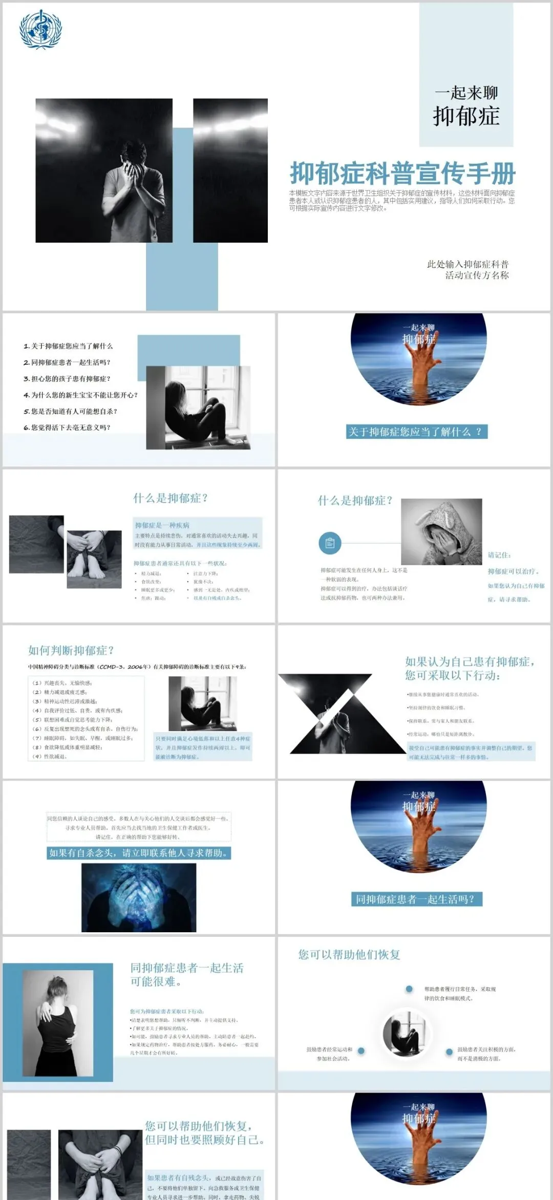 为此小编意整理了30套抑郁症主题ppt成品,供给心理师和老师领取
