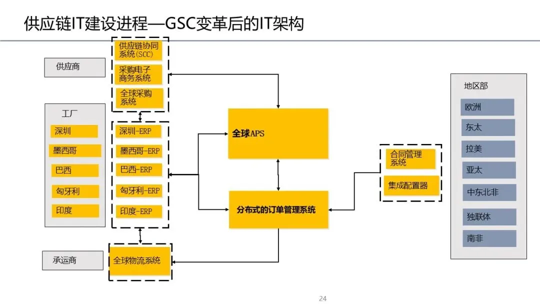 交付模式演进:从“按订单生产”到“按库存+按订单结合”,实现全球订单协同与可视。