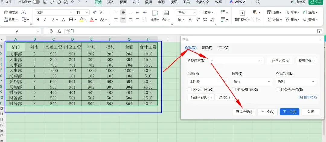 首先,我们要知道,所有的公式都是以=开头的,那么,如果我们想把所有的公式都要查找出来,要怎么做呢?