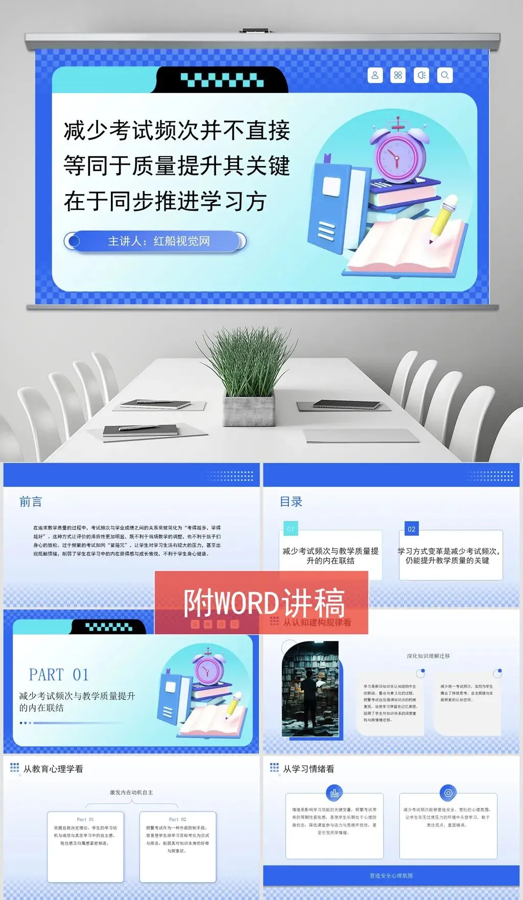 本课件主要内容为减少考试频次关键同步推进学习方式的系统性变革PPT课件,讲稿字数:2243字。