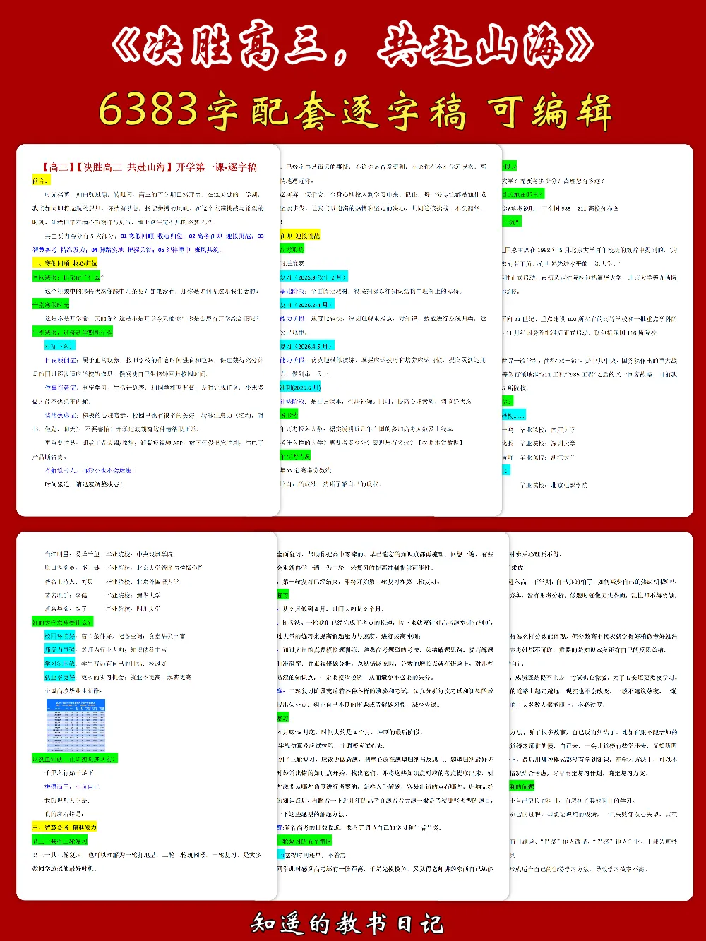 智慧备考与心态指导:深度剖析复习中的五大“雷区”(如“假努力”、“偏科”、“熬夜感动自己”等),并提供实操性极强的解决策略。同时,提炼出高三成功的五个关键词:心态、目标、方法、坚持、抵制诱惑,给予学生全方位的备考支持。💡