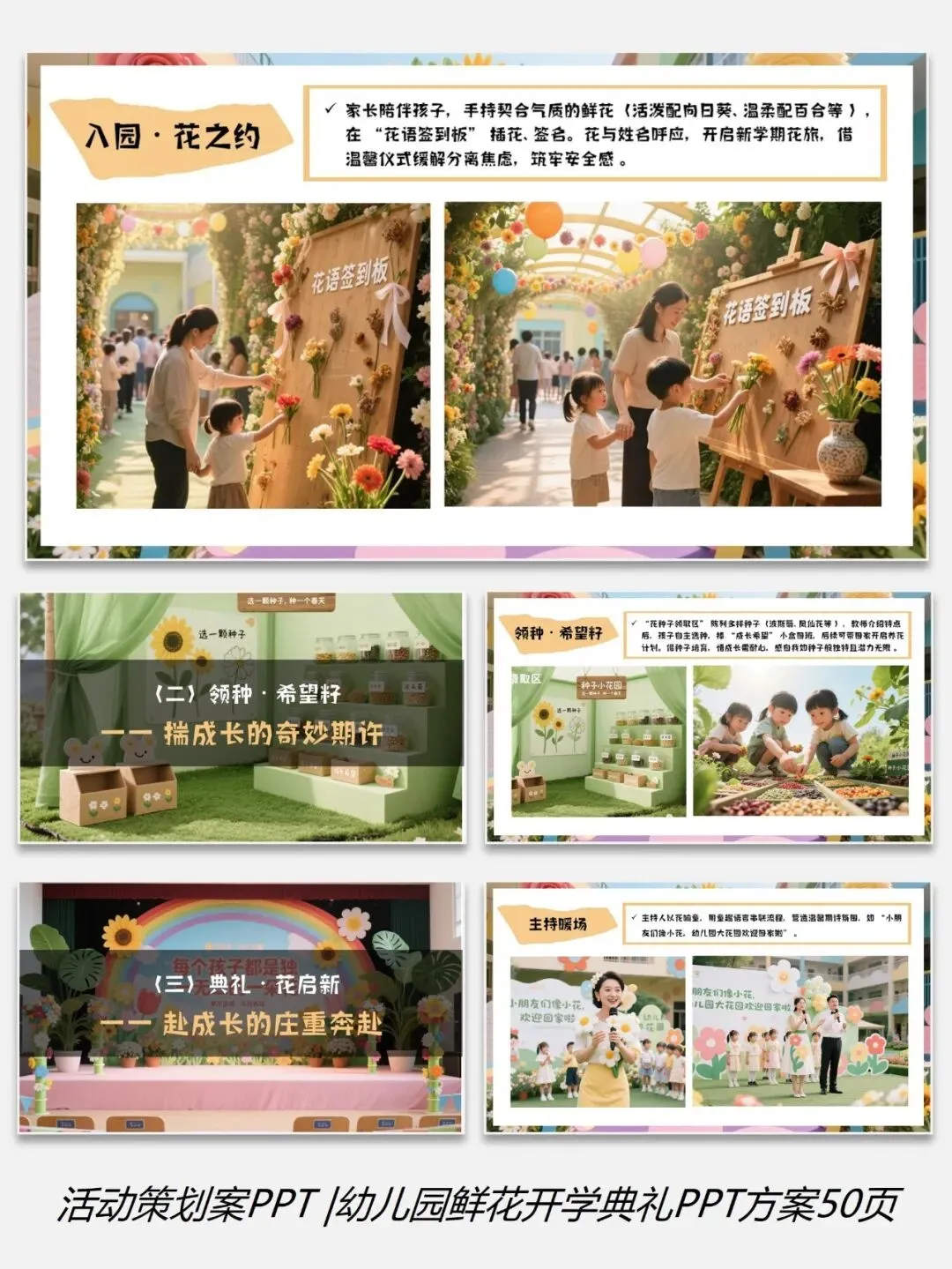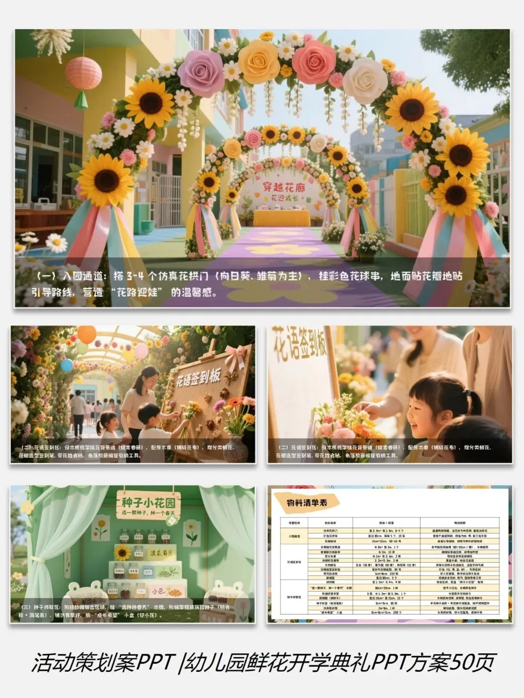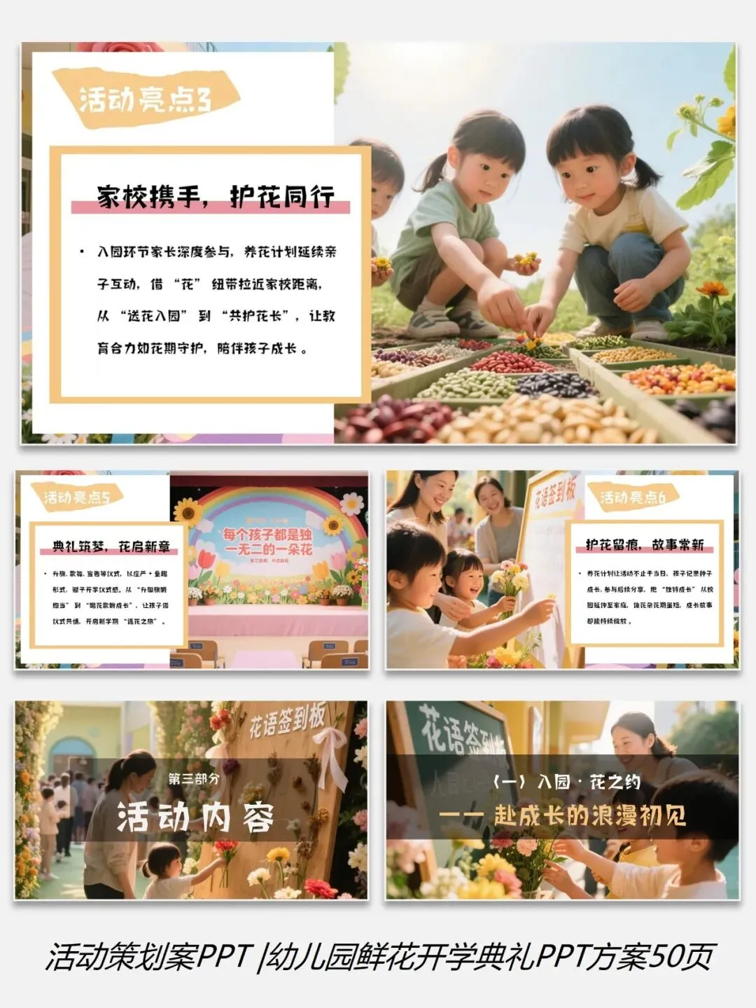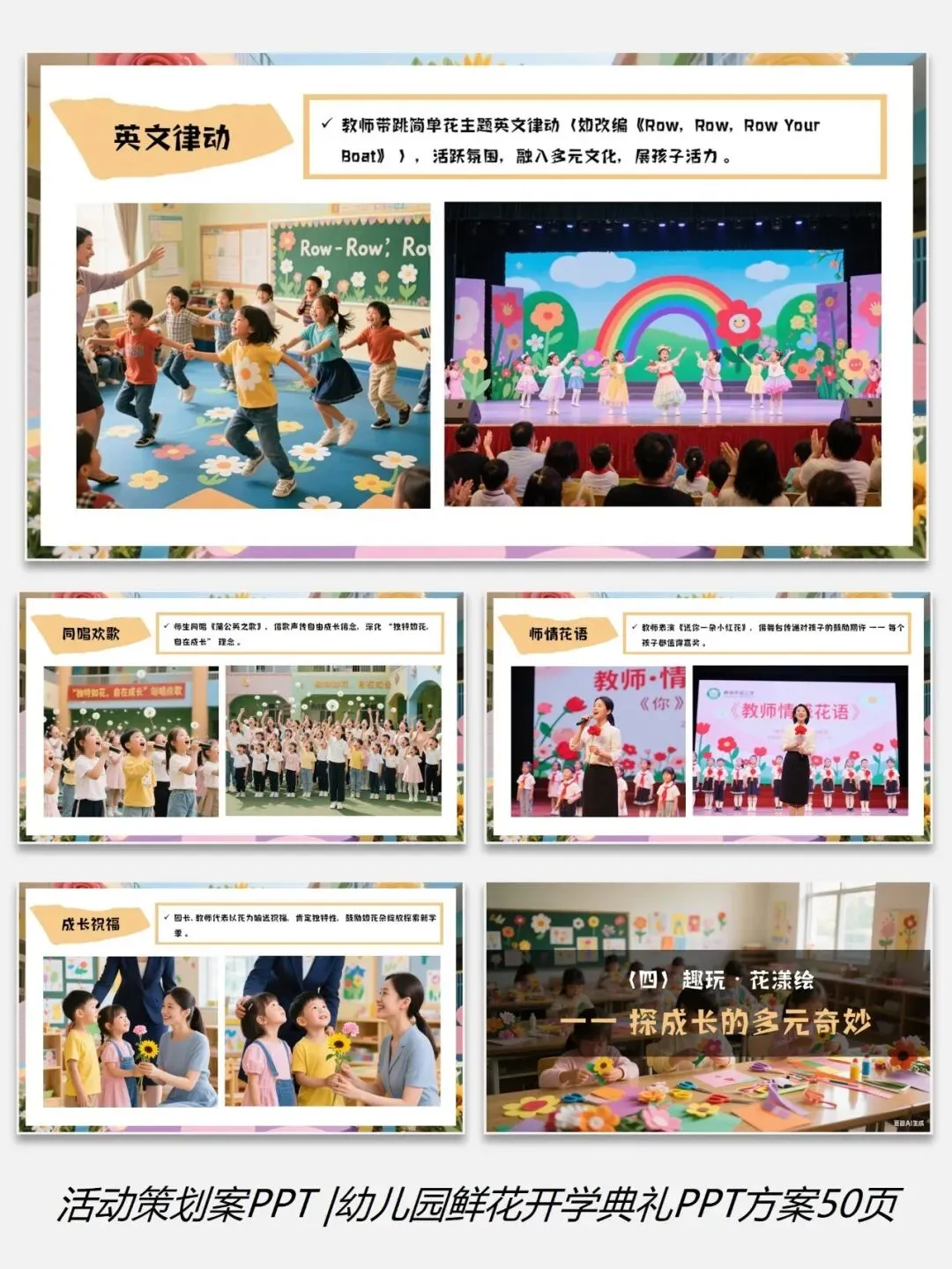 0226-0幼儿园学校鲜花主题开学典礼PPT方案50页(配套5份资料)