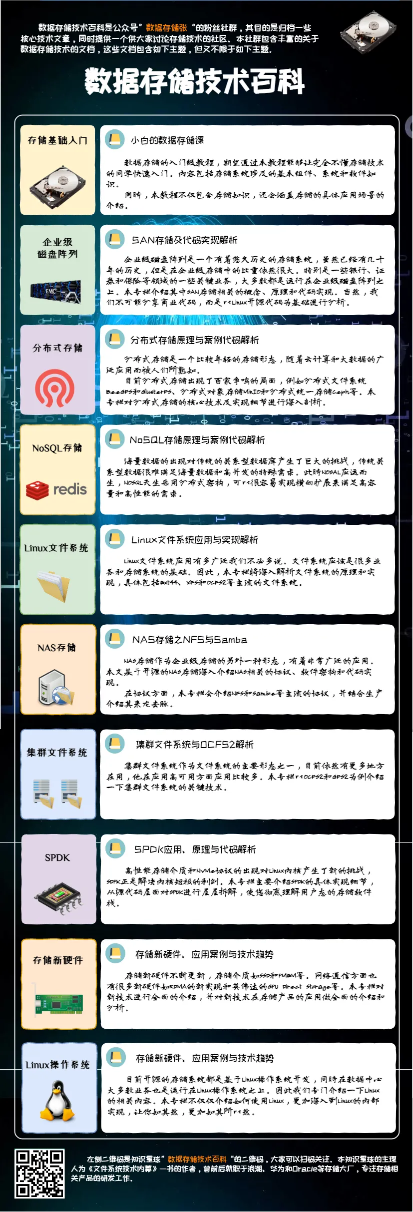计算机数据存储简史,从纸到云的变迁 基于Fuse的最简单的文件系统 代码覆盖率测试,聊聊gcov和lcovSAN存储的概念与基于iSCSI的操作实战 全面了解SSD,SSD关键术语全面解析 分布式虚拟文件系统,数据编排小能手 高性能的基础RAID0,实操与代码实现解析网络文件系统,年近五十岁,老当益壮弹性空间之道,逻辑卷管理(LVM)技术 计算机数据存储简史,从纸到云的变迁 基于树莓派和硬盘柜搭建一个几十TB的家用NASLinux存储软件栈到底有多复杂,存储软件栈全景概览 分布式存储的软件架构与案例解析 数万客户端NFS服务的困境,聊聊自动挂载技术 深入了解一下SSD的相关内容 什么是文件系统,以Linux中的Ext4为例细聊一下 对象存储,从单机到分布式的演进 为什么都说NFS读写性能差,如何进行优化?SPDK块设备抽象层bdev对多种后端模块(驱动)的支持计算机的存储体系与性能金字塔Linux是如何将硬盘展示给用户的,从物理设备到通用块层 聊聊ZFS文件系统,一个免费开源的存储引擎云计算的出现与存储系统形态的改变 分布式数据路由的基石,聊聊一致性哈希算法 如何创建一个比物理空间大的卷 ,聊聊自动精简配置介绍一款免费开源的企业级存储软件企业级磁盘阵列软件架构与功能概述高性能存储的基础,了解一下内存的方方面面介绍几个学习存储通信协议的利器从电商系统认识数据与数据的存储