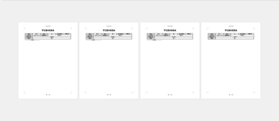 以前要做 4 份学生信息表,我得复制粘贴 4 次;现在,我只需要: