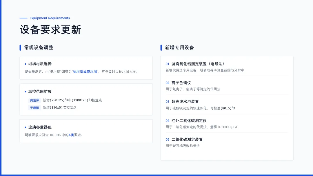 要求:与旧标准相比有哪些主要技术变化,包括检测方法、设备等所有改动、删除,或增加的内容。