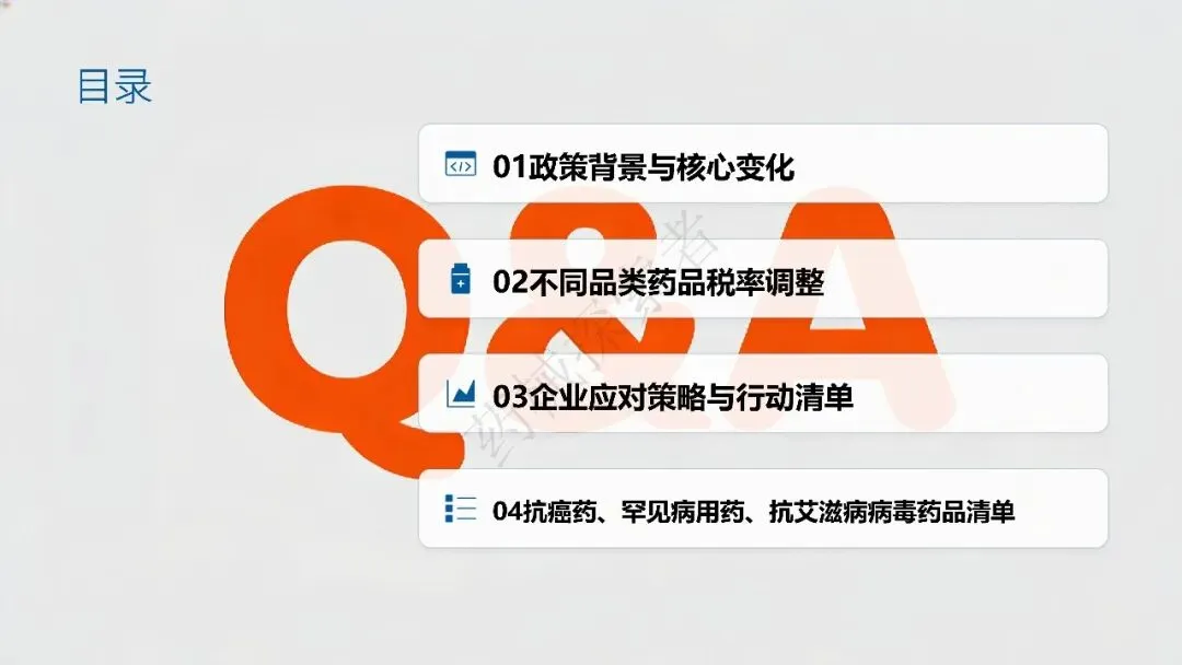 本次药品行业税率调整呈现 “分品类差异化” 特征,核心围绕生物制品、抗癌 / 罕见病药、抗艾药、避孕药四大类展开,各品类税率适用标准清晰明确: