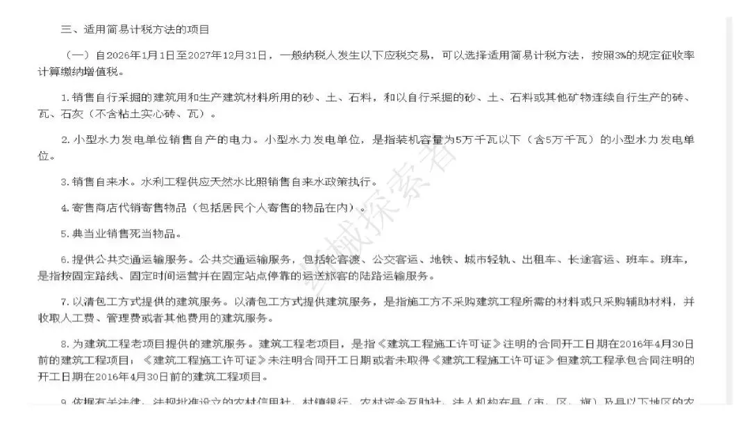 依据新公告第六条,2025 年 12 月 31 日前制发的未被延续的优惠政策同步停止执行,由此确定生物制品、避孕药的税率迎来关键调整;同时公告也明确了 2026-2027 年小规模纳税人增值税起征点,以及其他适用简易计税、免征增值税的项目范围。