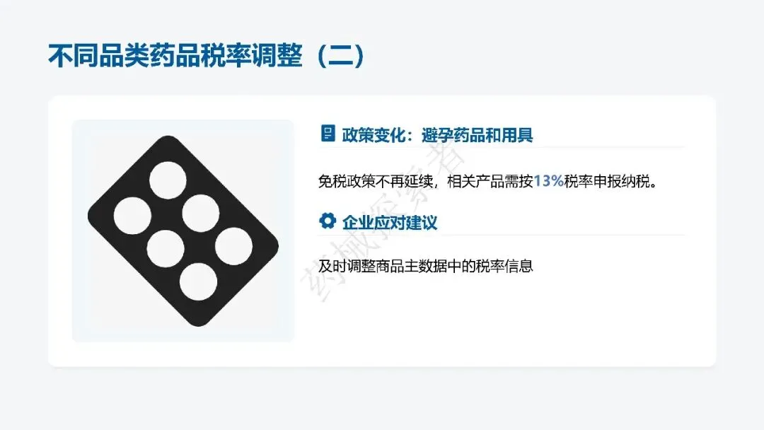 - 3、避孕药品和用具免税政策取消,按 13% 正常纳税;