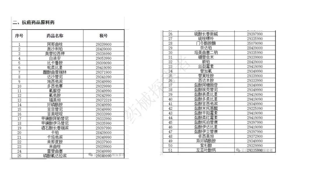 - 抗癌药品:依据 2018 年财税 47 号文、2020 年第 39 号公告、2022 年第 35 号公告,发布三批抗癌药品清单,包含阿那曲唑、达可替尼、阿贝西利等数百种制剂及原料药,此类药品均可选择 3% 简易征收。