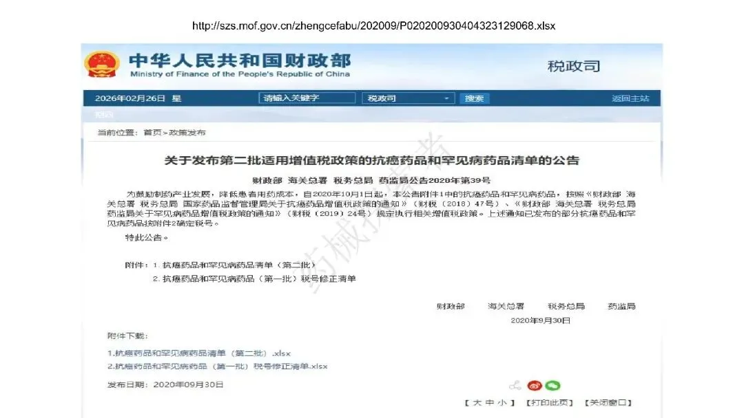 为便于企业精准核对产品税率适用标准,国家税务总局等部门明确了可享受税收优惠的药品清单范围,且清单实行动态调整,核心清单及政策依据如下: