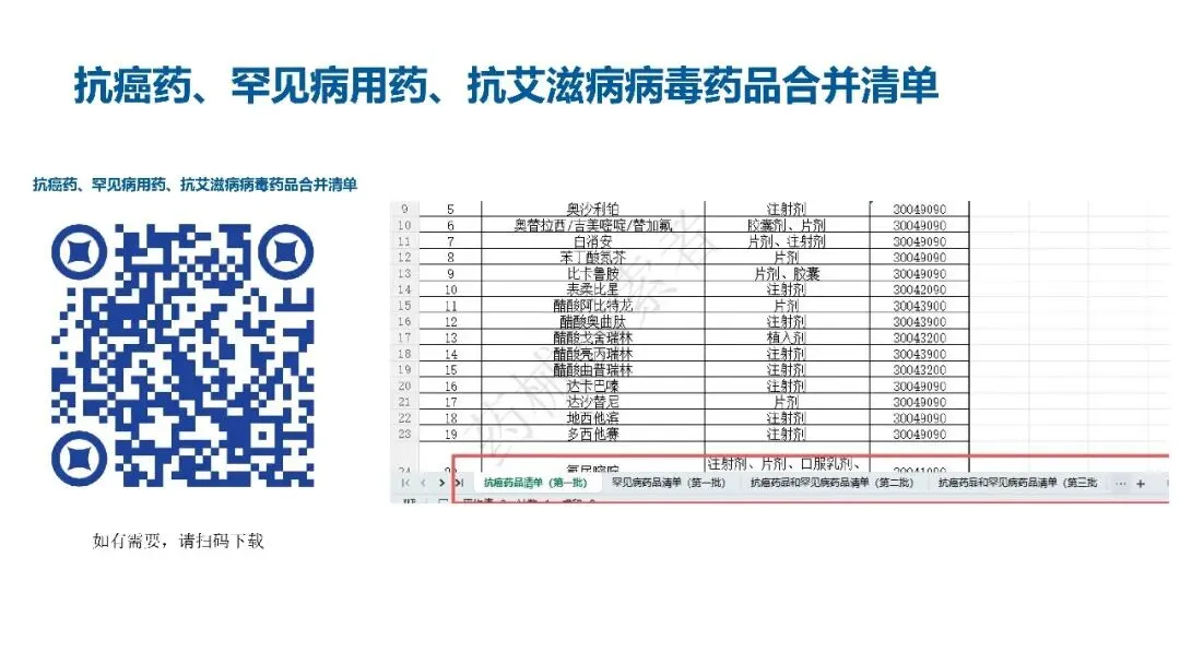 上述三类药品的合并清单可通过财政部税政司官网或官方指定渠道扫码下载,企业可按需核对。我也将这些内容整理进了一个表格中,这个表格一共含有5个子表格,大家如有需要可以扫码下载:五、总结与核心要点