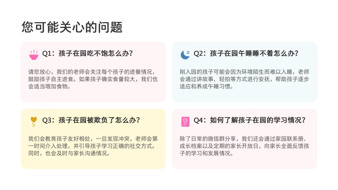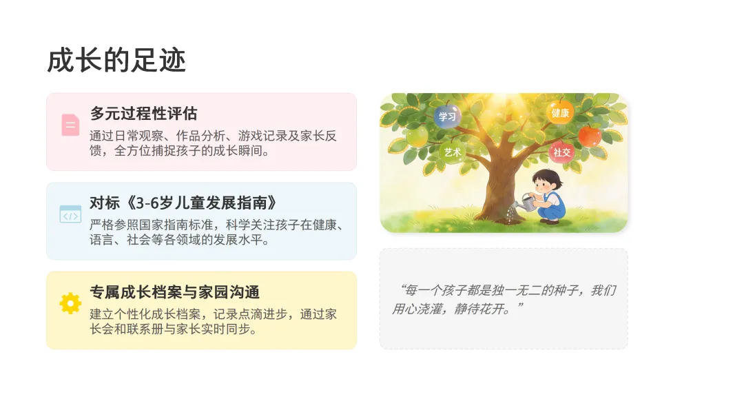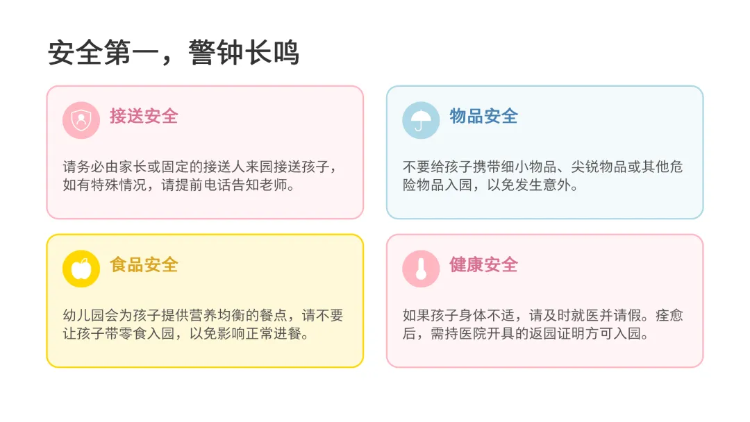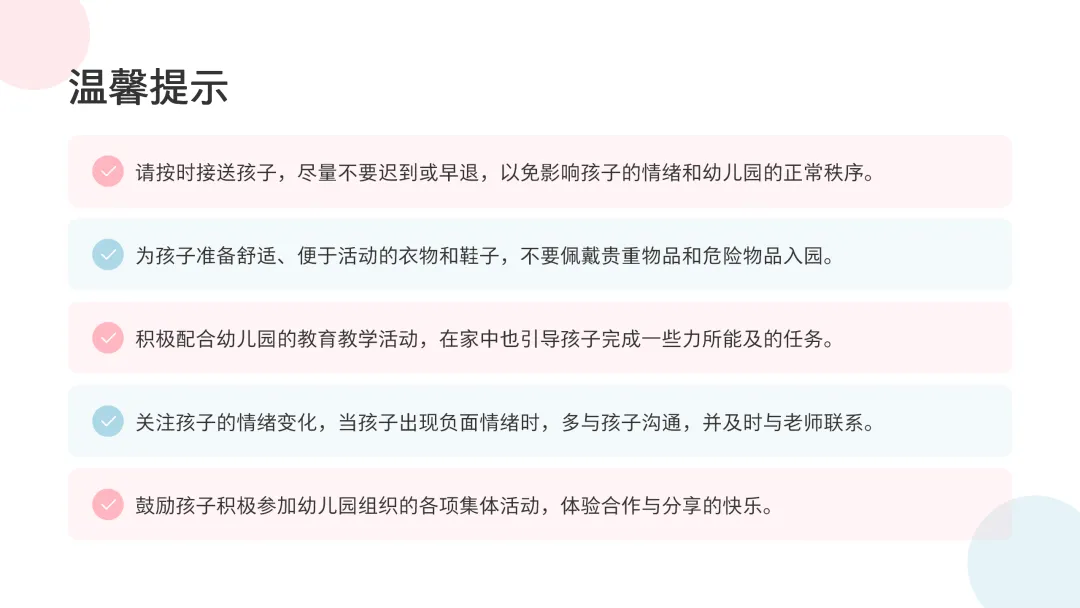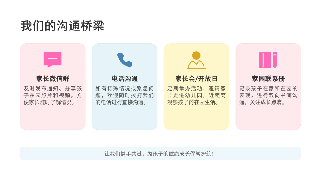 此外,PPT 为每一页都配备了详细的演讲稿,语言亲切自然,方便教师直接使用。无论是用于新生家长会还是老生升班家长会,这份 PPT 都能有效帮助幼儿园与家长建立良好的合作关系,共同助力孩子健康快乐成长。