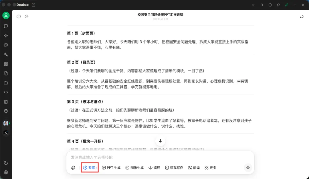 在豆包中直接复制,替换每页内容就行,建议切换为这个专家模式