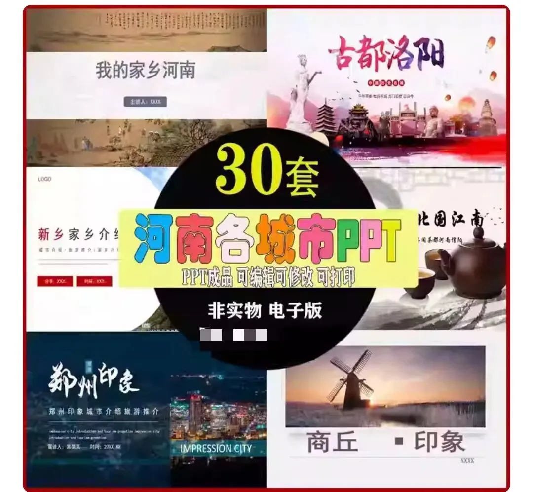 【PPT模板】我的家乡河南郑州洛阳商丘新乡开封安阳信阳城市印象介绍成品