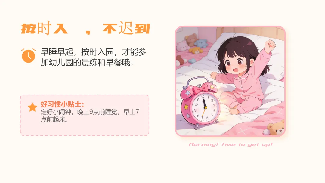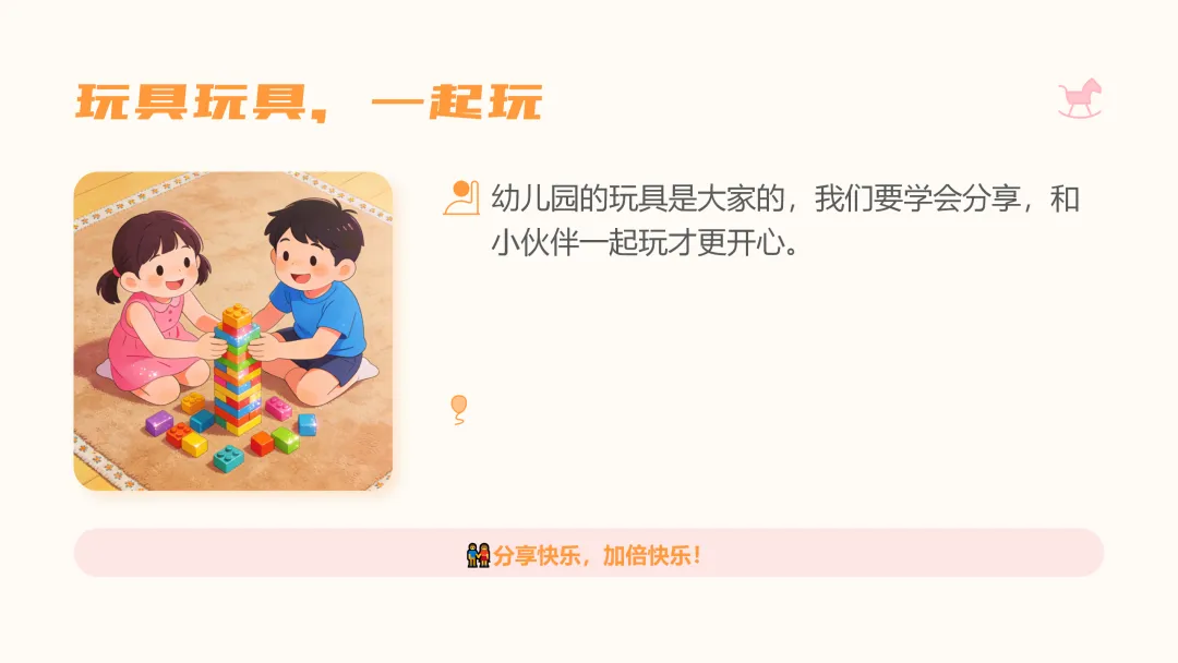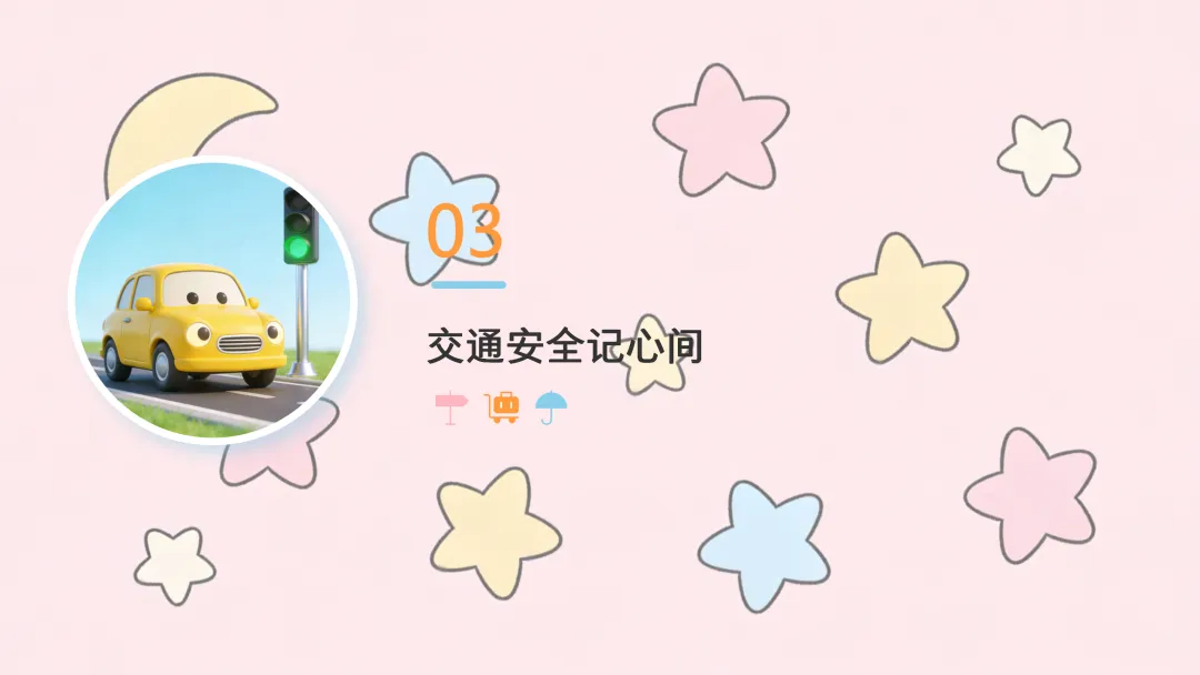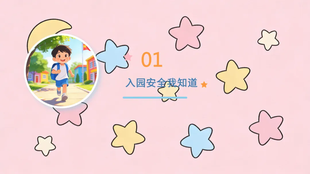 本PPT为幼儿园开学安全第一课专属设计,严格遵循活泼卡通风格,全片采用微软雅黑字体,字体清晰圆润、适配幼儿视觉习惯,避免复杂装饰,兼顾趣味性与可读性,贴合3-6岁幼儿的认知特点,助力教师高效开展开学安全启蒙教学。