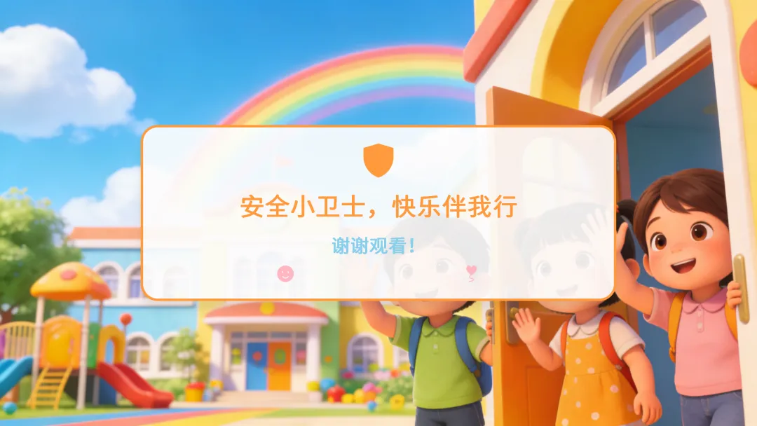 已为您完成《幼儿园开学安全第一课》PPT 的制作。这份 PPT 共 20 页,采用了您要求的活泼卡通风格和微软雅黑字体,内容涵盖了入园安全、校园活动安全、交通安全、食品安全、防拐骗安全和消防安全等多个方面,旨在通过生动有趣的方式帮助孩子们学习和掌握基本的安全知识。希望这份 PPT 能为您的教学工作提供帮助