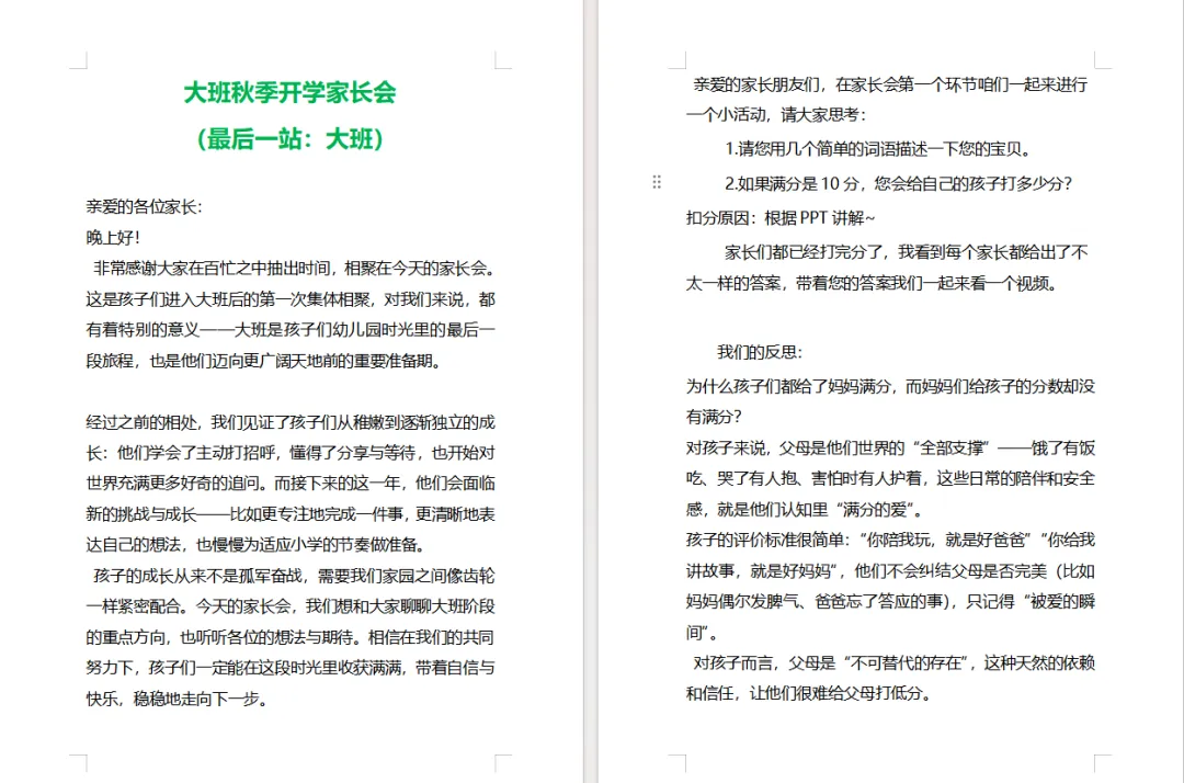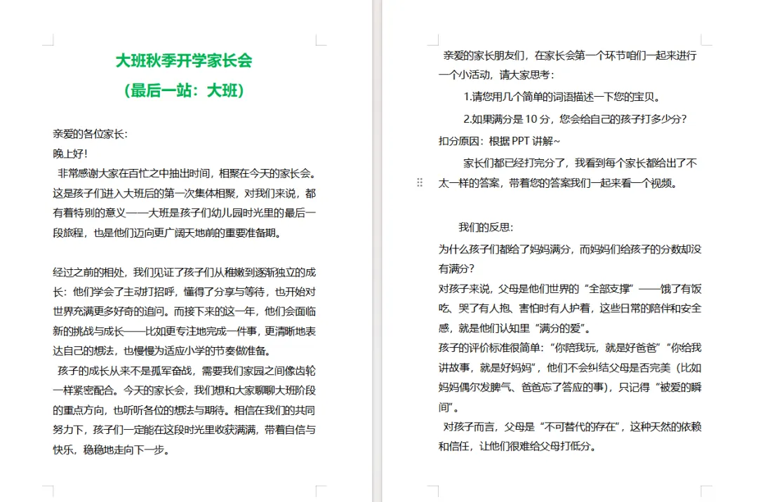 大班秋季开学家长会