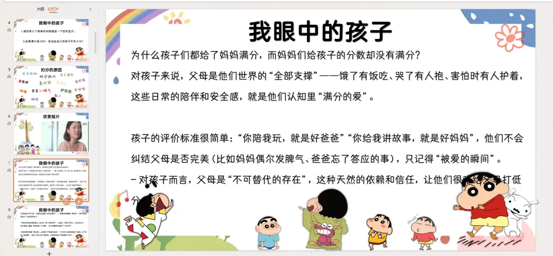 家长们都已经打完分了,我看到每个家长都给出了不太一样的答案,带着您的答案我们一起来看一个视频。