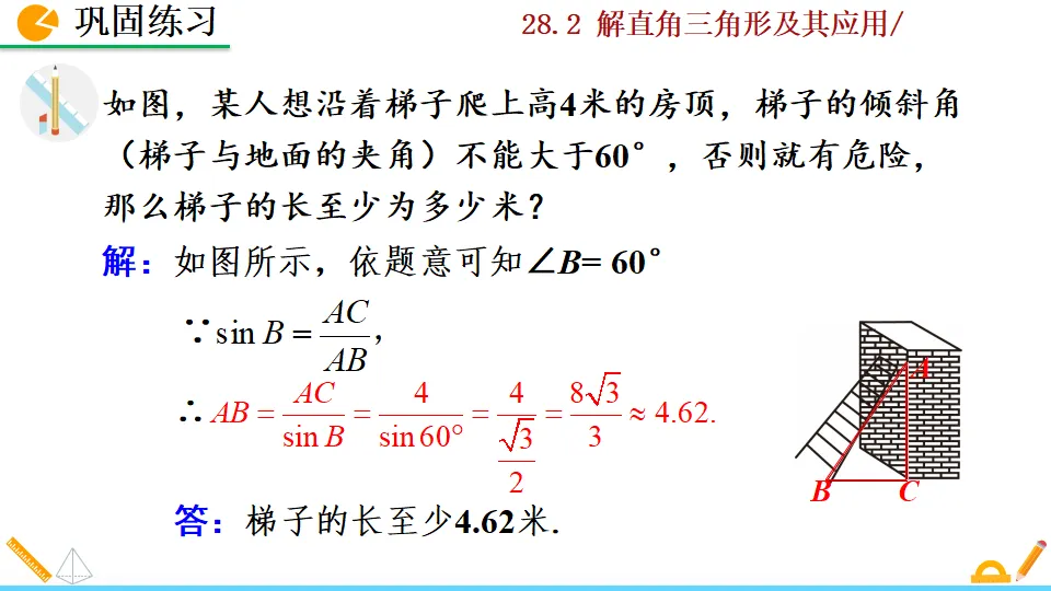 当前位置:首页>PPT>解直角三角形及其应用应用举例第一课时PPT教学课件人教版数学九年级下册