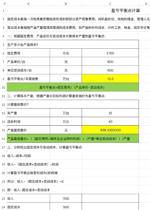 盈亏平衡点excel表格使用深度讲解(需要具备基础的财务知识)