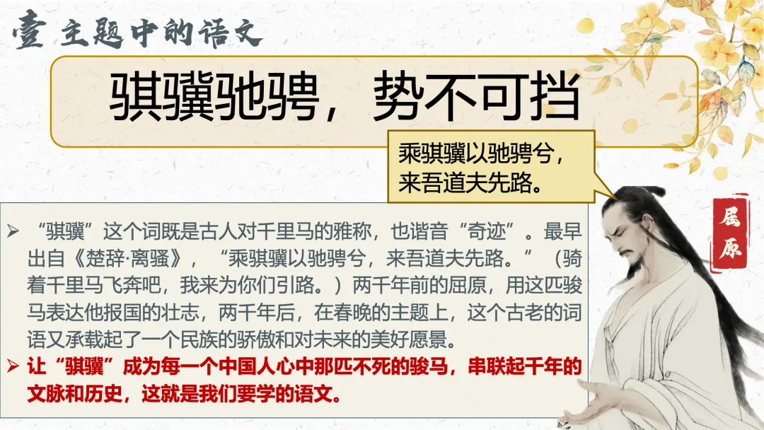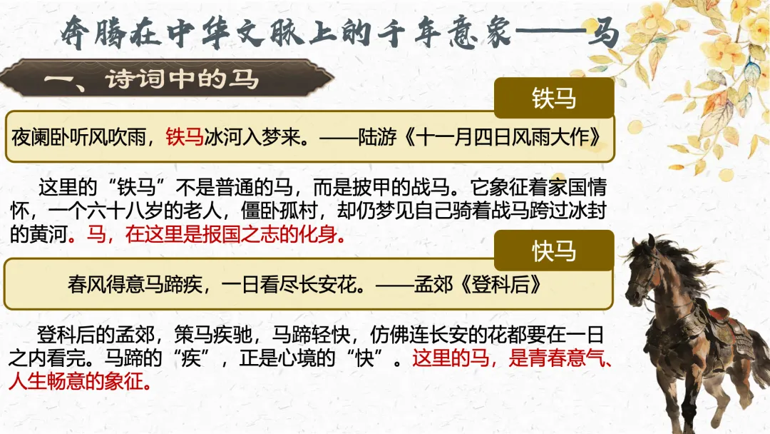 从诗词中的铁马、快马、骏马、瘦马出发,不是讲知识点,而是借意象引出——情感、人格、理想与时代。