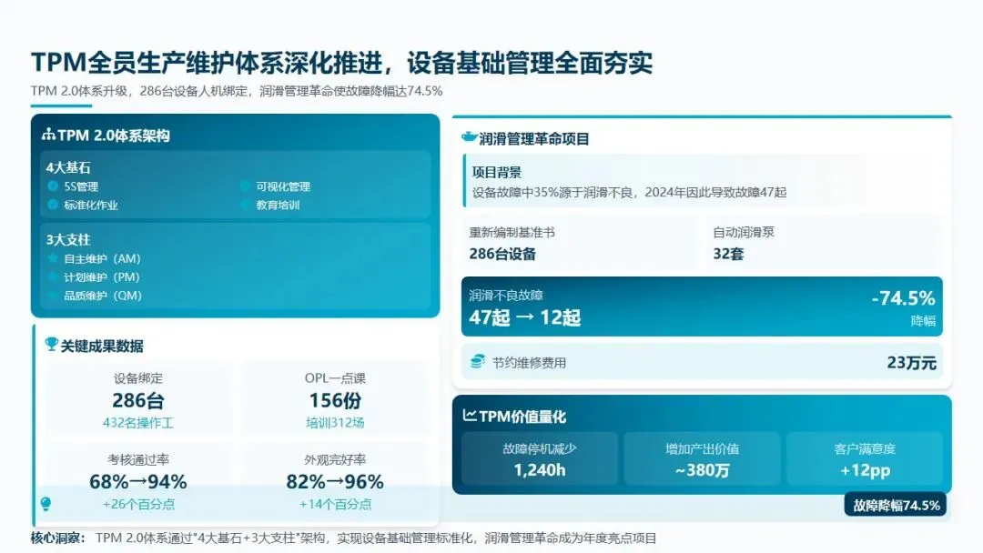 (一)TPM全员生产维护体系深化推进,夯实设备基础管理
