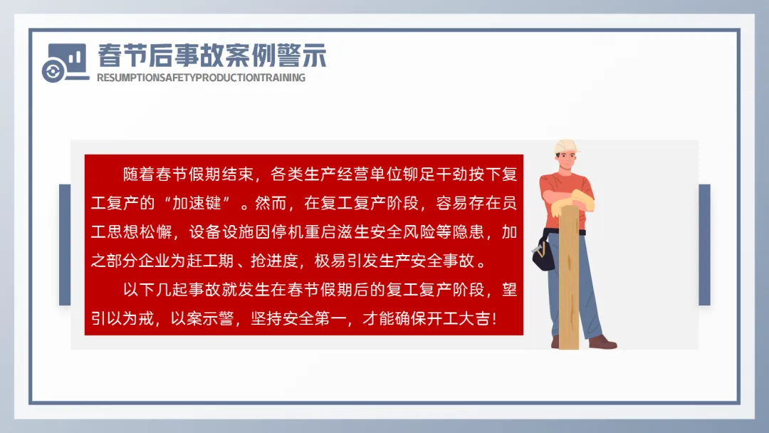 4.关注上方公众号,回复作业事故案例视频合集,即刻获取(永久有效)5.关注上方公众号,回复复工复产视频合集,即刻获取7部复工复产视频