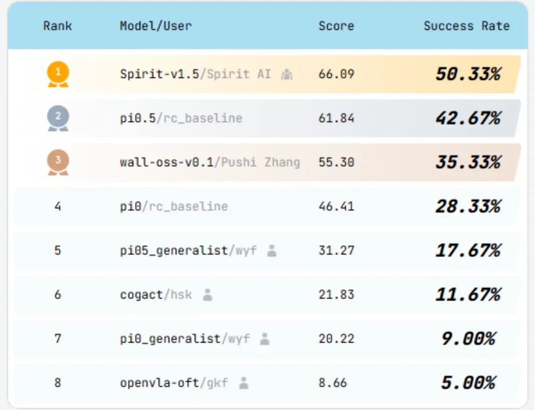 自变量机器人开源的 WALL-OSS 仅用 4.2B参数击碎"模态统一、动作精度、能力泛化"不可能三角,是唯一一个具备语言、视觉、动作多模态端到端统一输出能力的开源具身模型。 架构创新:4.2B参数的模型,首创“共享注意力+专家分流”架构,将语言、视觉、动作统一在同一个表示空间处理,既避免了知识遗忘,又保留了各模态的独特表达能力。 其两阶段训练策略和统一跨层级思维链,让模型具备了内生的高级推理能力。在面对从未见过的任务时,它能自主拆解步骤、逐步思考。开源地址:https://github.com/X-Square-Robot/wall-x千寻智能开源的 Spirit v1.5 在被称为机器人“全球统考”的RoboChallenge真机评测中,以总分66.09的成绩超越美国的pi 0.5,登顶第一。预训练阶段大量使用包含丰富多样性的互联网视频,建立对真实物理世界的广泛认知,再用高质量遥操作数据微调。这种方法训练出的模型,抗干扰能力和泛化能力极强。在多项任务中保持较高成功率,尤其在多任务连续执行、复杂指令拆解以及跨构型迁移等维度中表现稳定。开源地址:https://github.com/Spirit-AI-Team/spirit-v1.52026年,或许就是具身智能从“动起来”到“用起来”的转折之年。而这六大国产模型,正以开源之名,为这个未来铺设最坚实的起跑板!最后,小伙伴们可留言区回复‘加群’进入大模型交流群、视觉应用落地交流群,另外点个星标可每天第一时间获取推送!