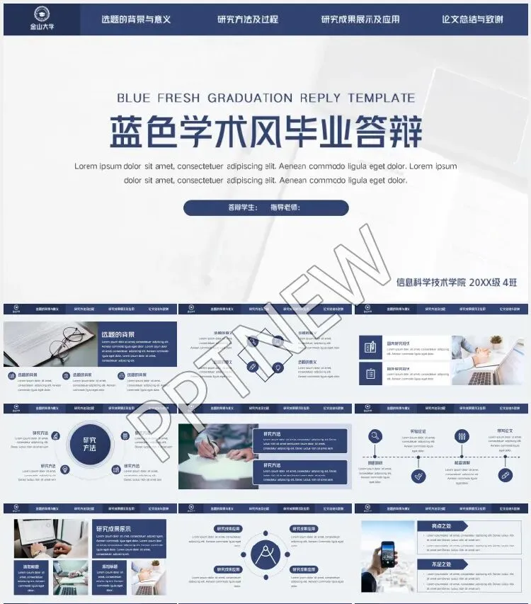 这45套导航栏学院风答辩PPT模板,汇集了多样化的设计风格和主题,从蓝色学术风到极简风,满足不同学院和专业的答辩需求。