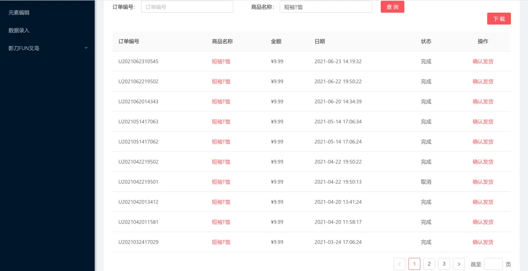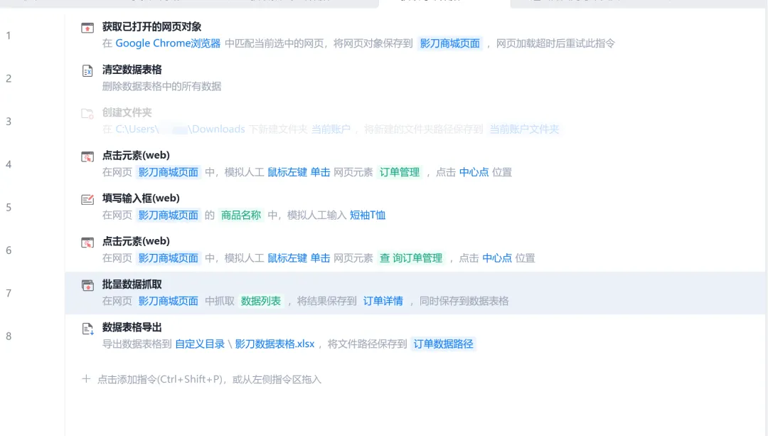 逻辑:先搜索所有短袖T恤再保存到数据表格,最后导出Excel到指定路径和名称。