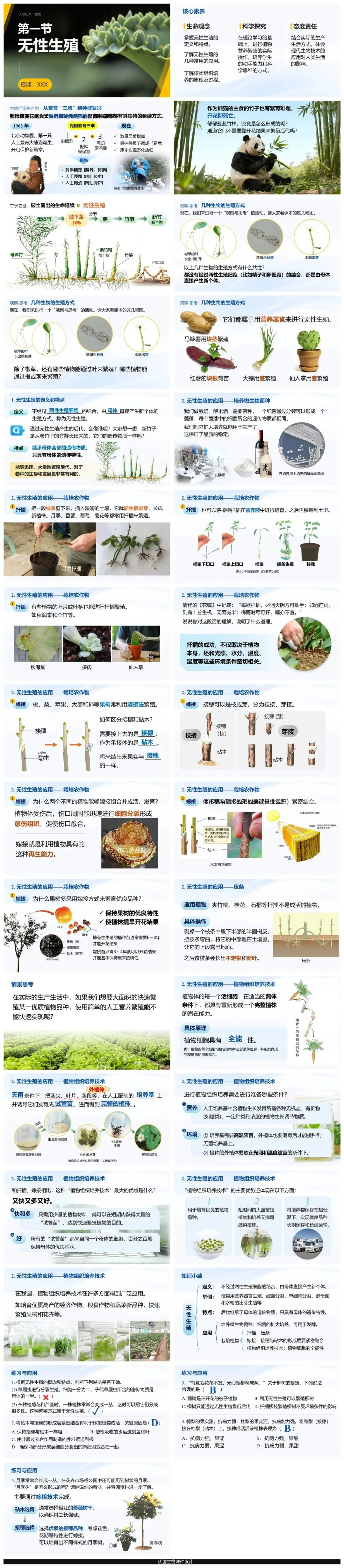今天为大家分享一份八年级下册《无性生殖》的优质PPT课件。这份课件不仅涵盖了基础概念,更通过精美的图示详细拆解了“嫁接”、“扦插”及“组织培养”等难点,非常适合新课教学。
