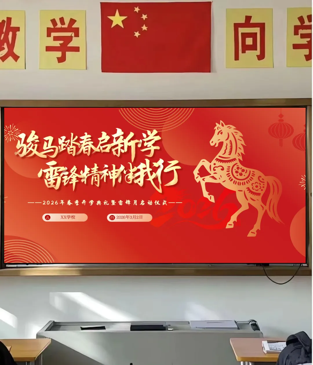 >2026年春季开学典礼PPT背景|骏马驰骋踏春来 雷锋精神润校园【完整版】