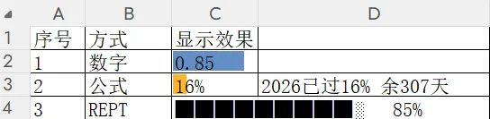 -- & " " & TEXT(C2, "0%"):在进度条后面加空格,并显示原始的百分比数字,这样既有图形又有具体数值。