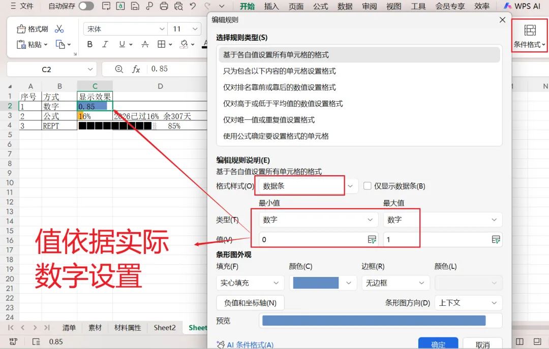 Excel进度条-条件格式 | Office摸鱼研究所022