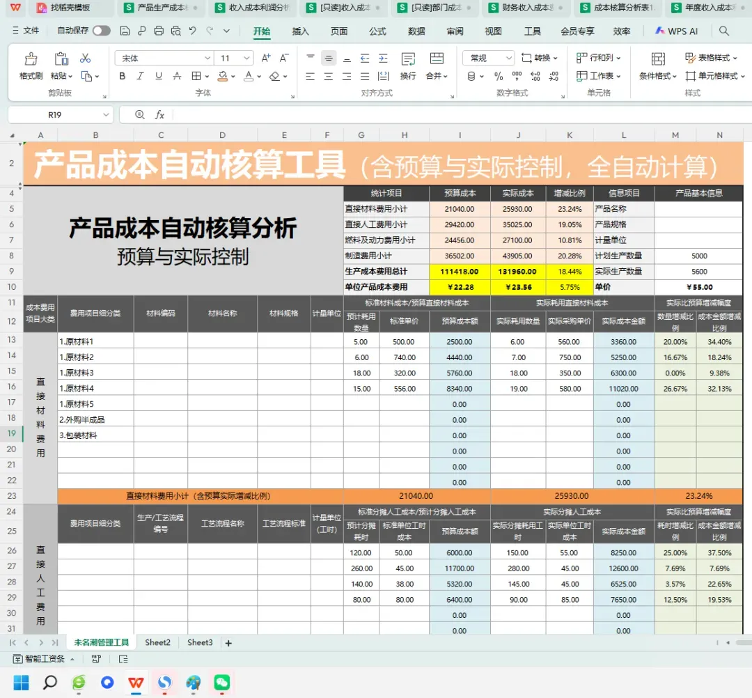 因此,小编在此整理了这套可视化成本核算分析表模板,套用自动进行成本核算分析。具体见下文展示。
