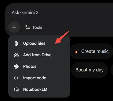 在浏览器中开启Gemini 3.1 Pro的工作界面后,通过点击附件上传按钮将指定的电子表格文件传输至当前会话。