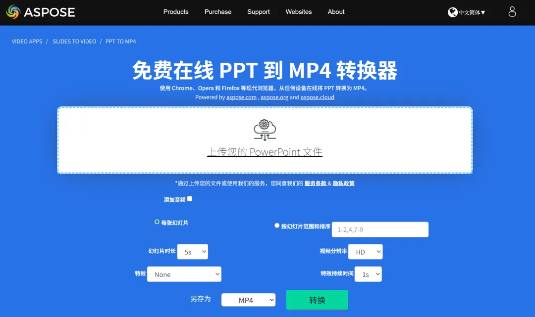 方法三:使用 ASPOSE 在线将 PPT 转换为 MP4 文件