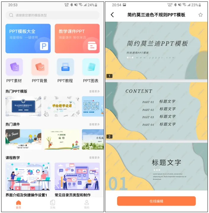 你的点赞分享就是我分享的动力,恳请大家动动手让大家都能够看到这是一款收集了海量PPT 模板,此版本为绿色版登录即可使用超级VIP特权,整合教学课件、学术答辩、商务汇报、营销策划等各行各业PPT模板,打开一个PPT模板就可以进行预览、编辑还可以直接下载到手机里,也可以发到电脑二次编辑修改。这里就以这个为例,不同行业的PPT模板非常多,还集各行各业任务所需高清素材,省得你到处去找素材的烦恼。有了模板你还不会修改,软件还有需要教学课程可以学习,包括PPT制作、文件编辑等视频教程。