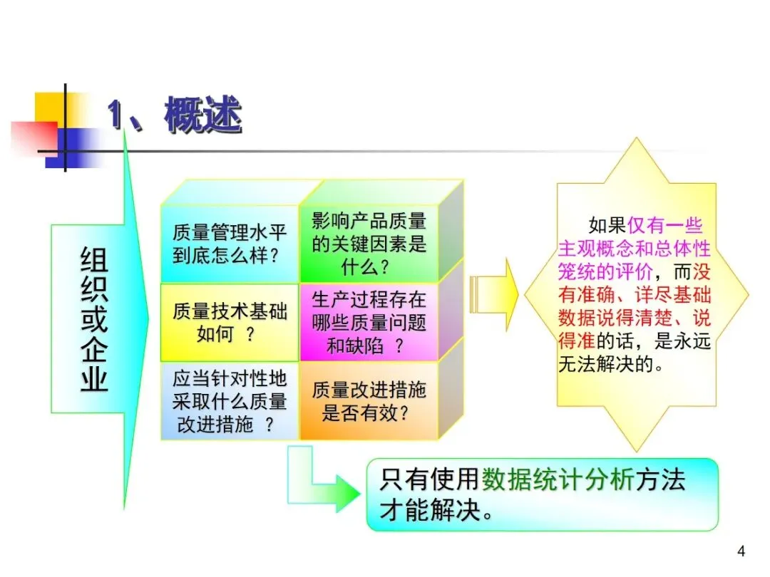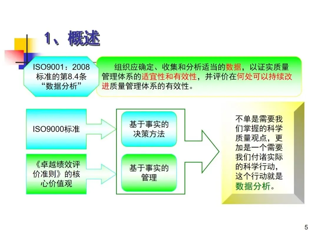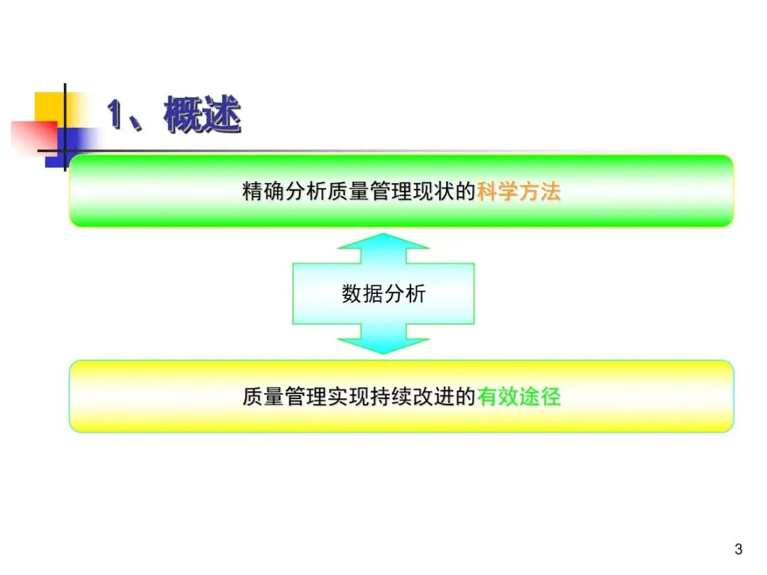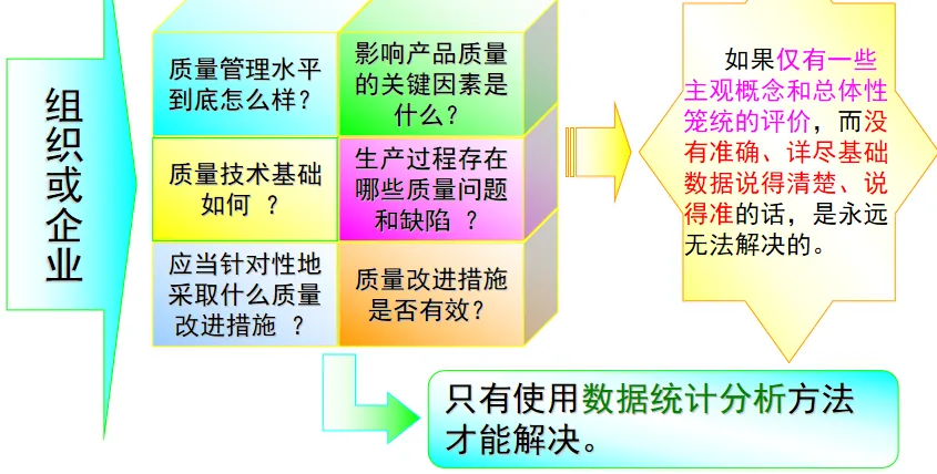 数据分析是一种科学的方法,可以准确地对企业的质量状况进行判断,也是一种有效地促进企业质量持续改善的手段,符合ISO9001和《卓越绩效评价准则》中关于“以事实为基础的决策”的核心要求,因此,通过对数据的分析,可以对企业的质量状况进行准确地判断,从而对企业的质量进行持续改善。企业质量管理中存在的质量水平评价、问题定位和关键影响因素确定等问题不能简单地用主观的笼统的评价方法来解决,只有采用数理统计的方法对这些问题进行分析,才能为企业的质量改进提供准确的基础和支持。