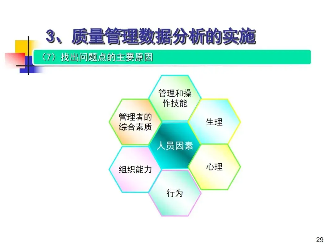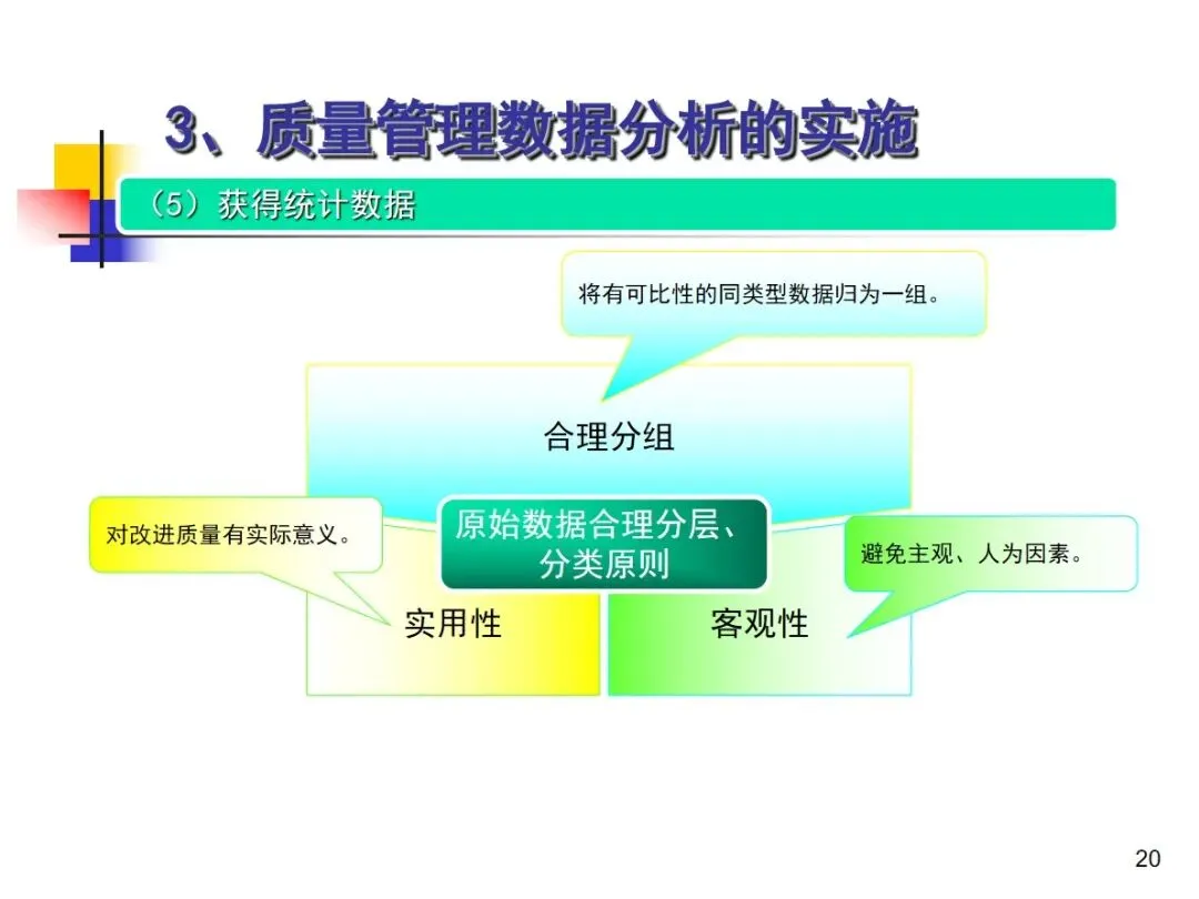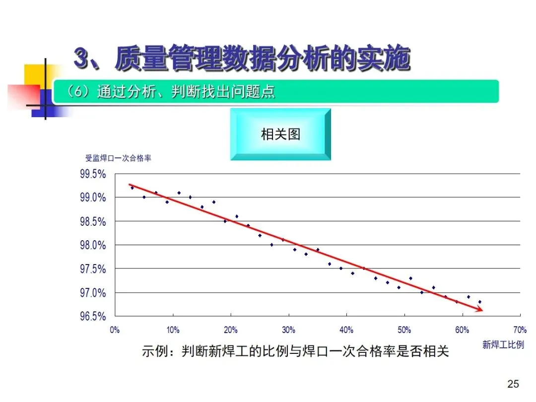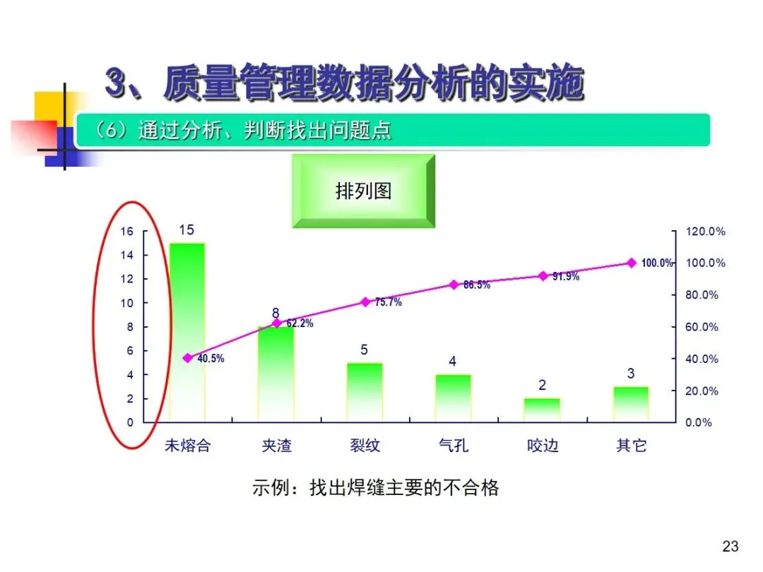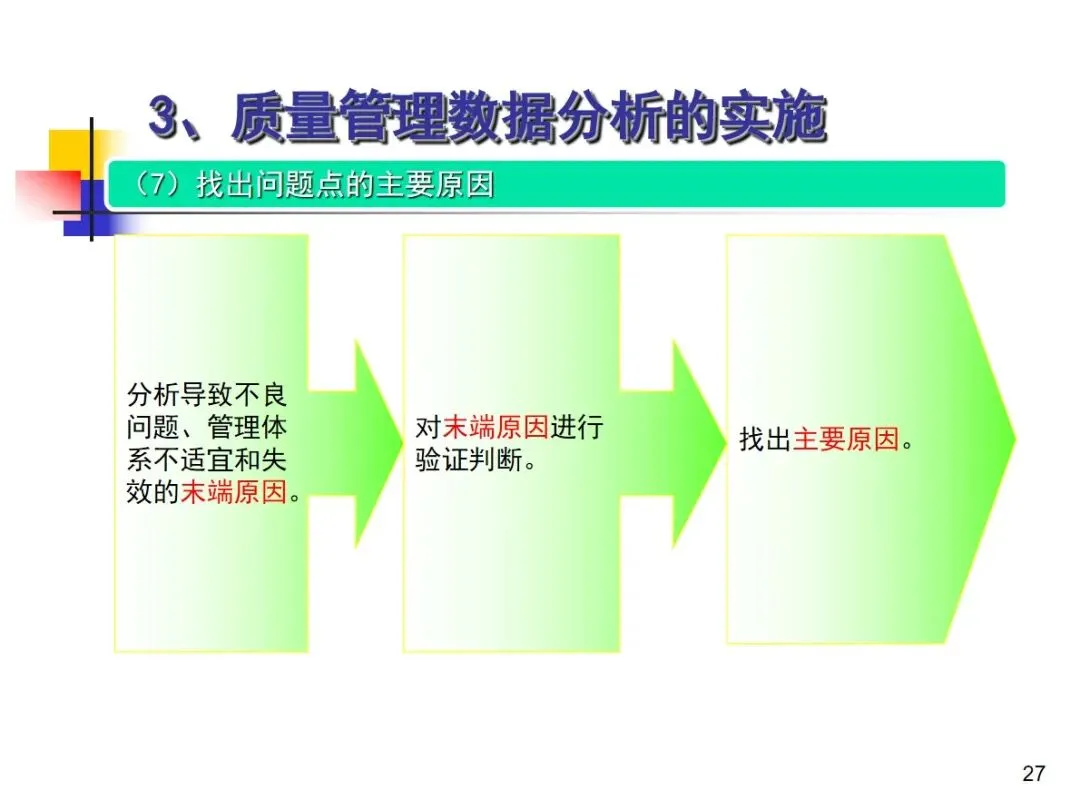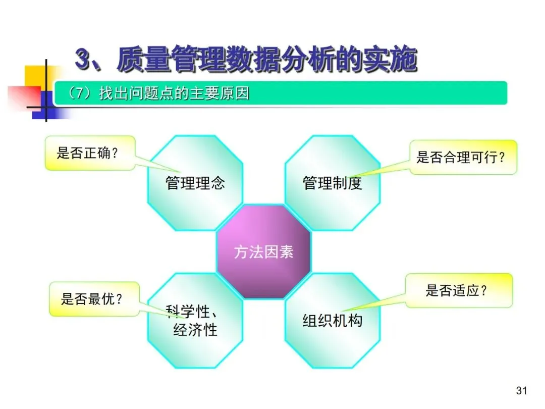 数据分析的实施主要集中在顾客满意度、产品符合性、过程与产品特性和趋势、供应商管理等四个核心方向上,每个方向都有具体的分析对象。数据采集应遵循客观、真实的原则,使用有效的计量器具在现场采集测量数据,调查资料应具有一定的代表性和代表性。对问题点的分析可以灵活地使用排序图,直方图,相关图,控制图等工具来准确地找出问题的关键所在;从人,机,料,法,环这五个要素出发,运用因果关系图,系统图等分析工具,追溯问题的根源,不浮于表面,最少问3-5个“为什么”。